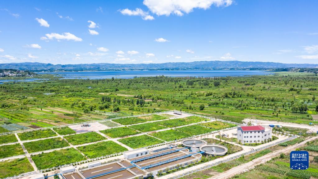 這是貴州草海國(guó)家級(jí)自然保護(hù)區(qū)的萬(wàn)噸生活污水處理廠(chǎng)(2019年6月20日攝,無(wú)人機(jī)照片)。新華社記者 陶亮 攝