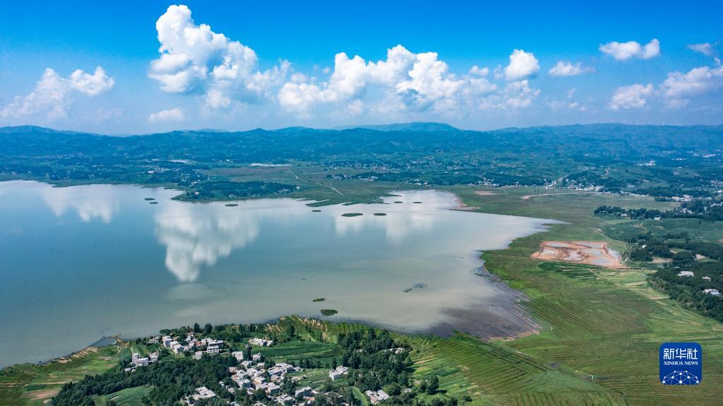 貴州草海國(guó)家級(jí)自然保護(hù)區(qū),退耕還湖成效明晰可見(jiàn)(2022年7月8日攝,無(wú)人機(jī)照片)。新華社記者 陶亮 攝