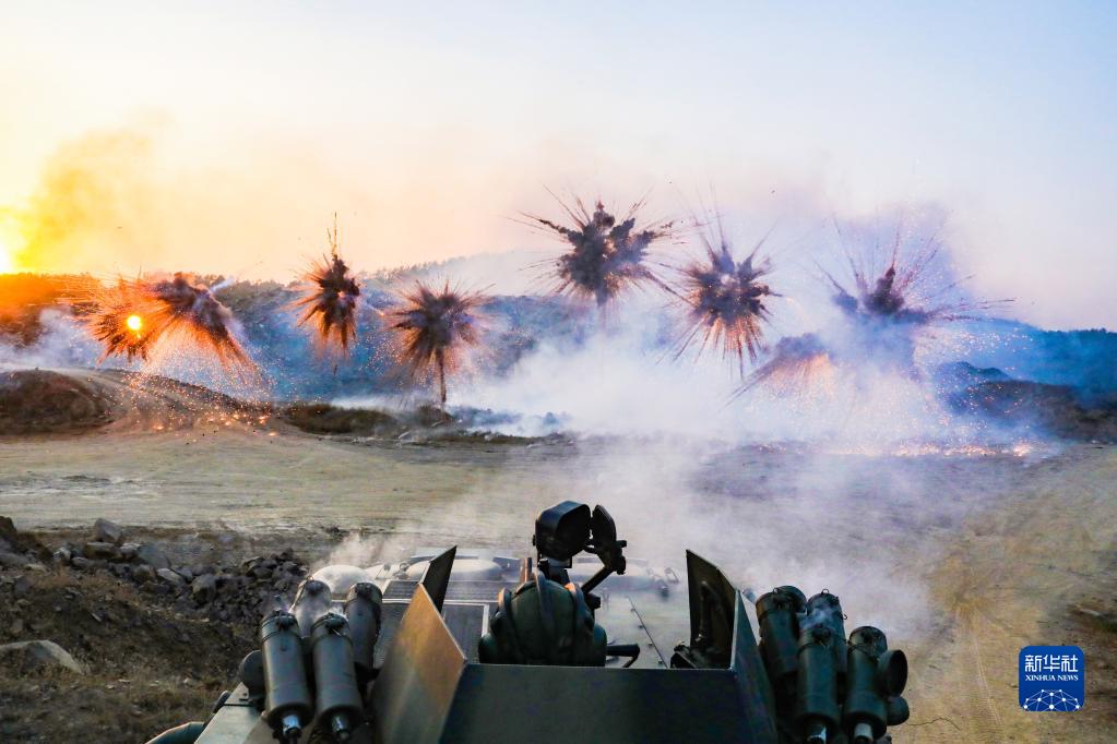 陸軍第72集團軍某旅組織某型輪式裝甲輸送車進行車載煙幕實彈射擊訓練(2021年1月4日攝)。新華社發(張毛 攝)