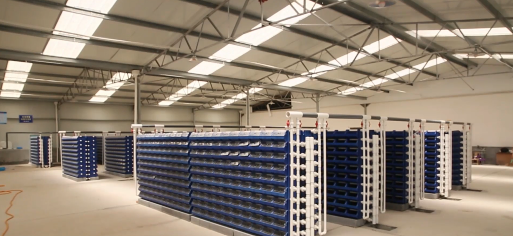 在浙江省寧海縣一市鎮,全省首個實現工廠化養蟹的車間里,一只只尚在成長期中的青蟹上岸住進了一格格透明的養殖單間里。