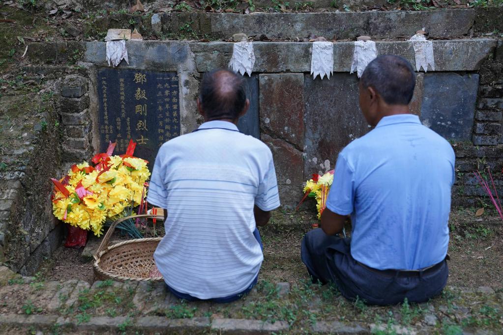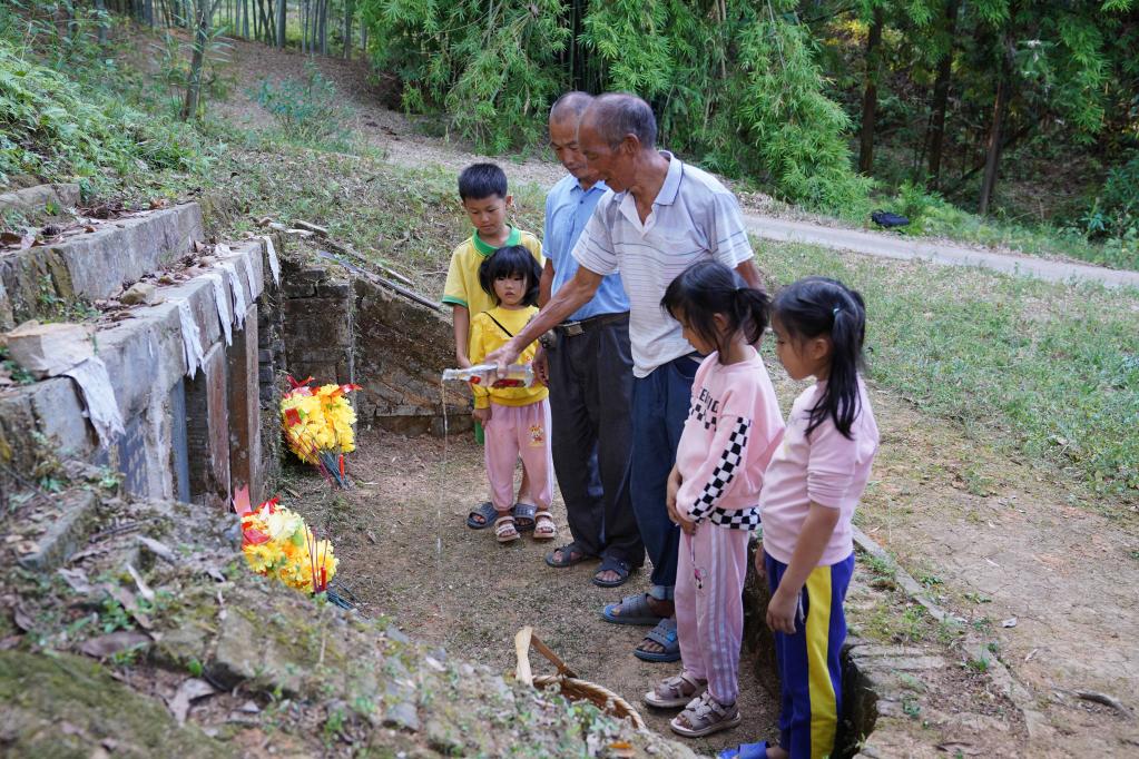 9月15日,謝南京帶著家人一起為烈士掃墓。新華社記者 周密 攝