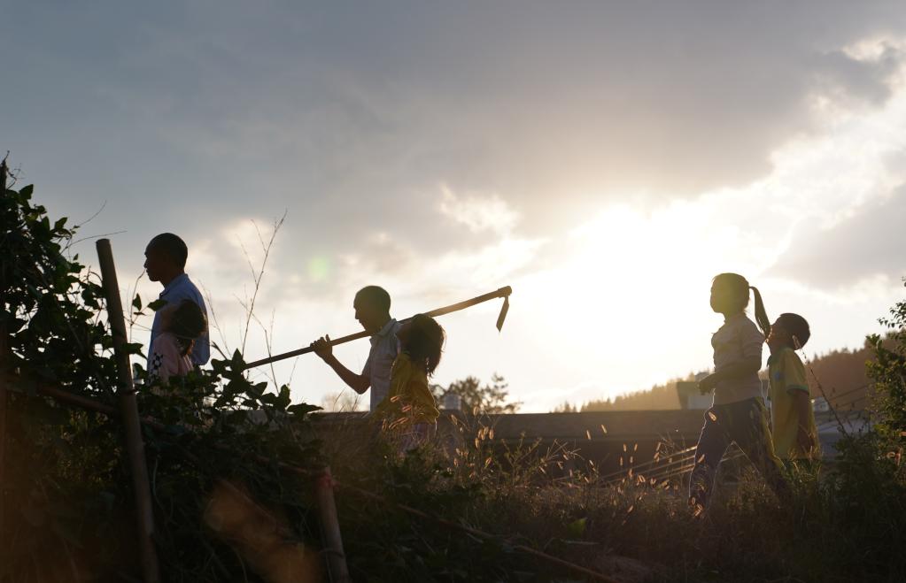 9月15日,謝南京和家人出發為烈士掃墓。新華社記者 周密 攝