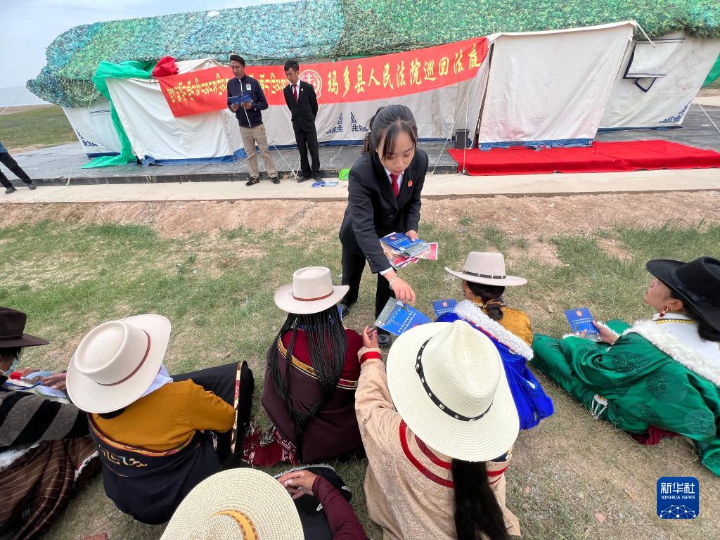 為減輕偏遠群眾訴訟負擔,瑪多縣人民法院利用“馬背法庭”“車載法庭”等載體,將法庭“搬”到牧民身邊,及時受理與群眾生產生活相關的各類案件?!把不貙徟辛Χ燃哟蠛?,牧民群眾法律意識不斷增強,遇到困難會及時向法院求助?!爆敹嗫h人民法院院長錢快乾說。
