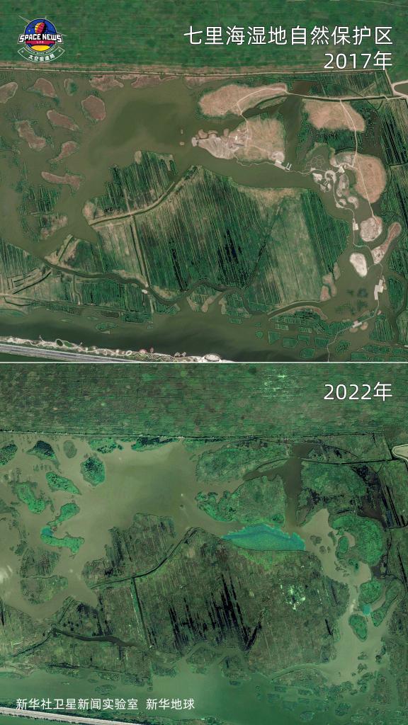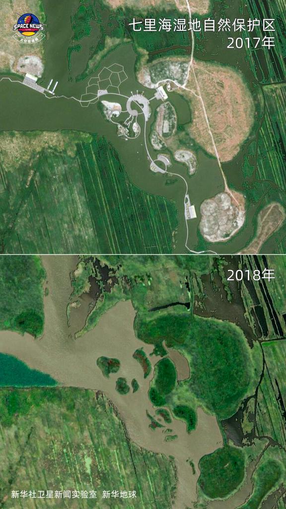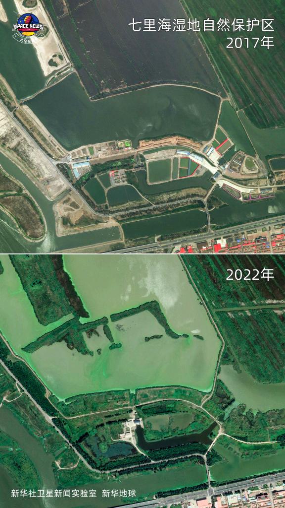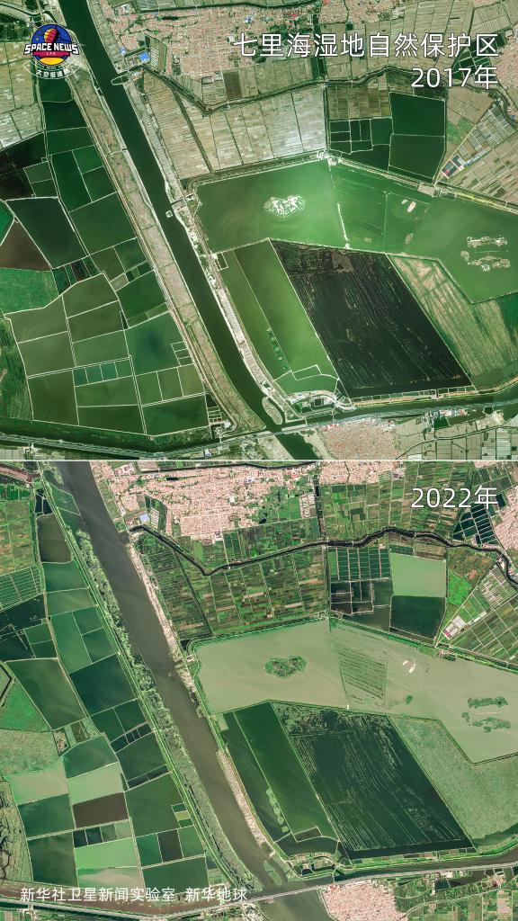 (七里海濕地衛(wèi)星圖對(duì)比)