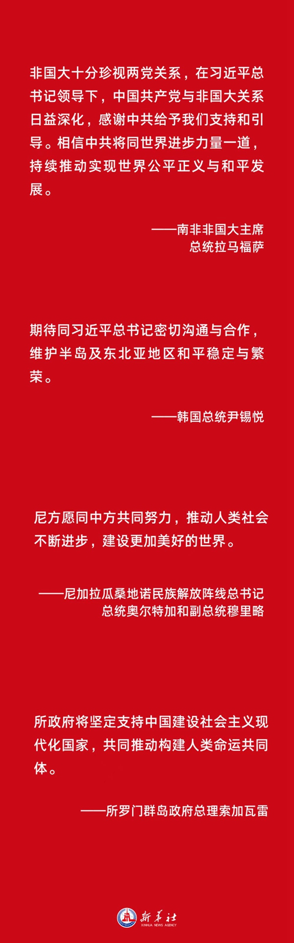 南非非國大主席、總統(tǒng)拉馬福薩表示,非國大十分珍視兩黨關(guān)系,在習(xí)近平總書記領(lǐng)導(dǎo)下,中國共產(chǎn)黨與非國大關(guān)系日益深化,感謝中共給予我們支持和引導(dǎo)。相信中共將同世界進(jìn)步力量一道,持續(xù)推動實(shí)現(xiàn)世界公平正義與和平發(fā)展。