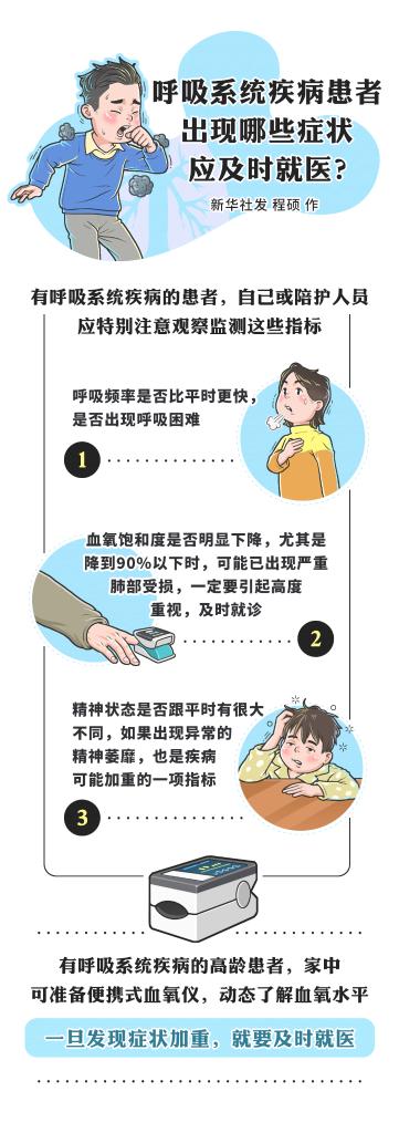 北京協(xié)和醫(yī)院呼吸與危重癥醫(yī)學(xué)科副主任徐凱峰提醒,有呼吸系統(tǒng)疾病的患者,自己或陪護(hù)人員應(yīng)特別注意觀察監(jiān)測(cè)這些指標(biāo):