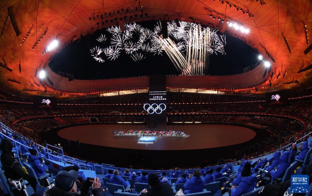 2022年2月4日晚,第二十四屆冬季奧林匹克運動會開幕式在北京國家體育場舉行。這是開幕式上的焰火表演。新華社記者 徐子鑒 攝