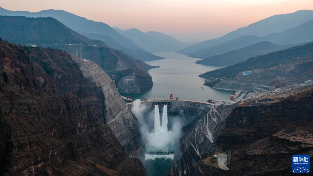 白鶴灘水電站一景(2022年12月19日攝,無人機照片)。新華社記者 胡超 攝
