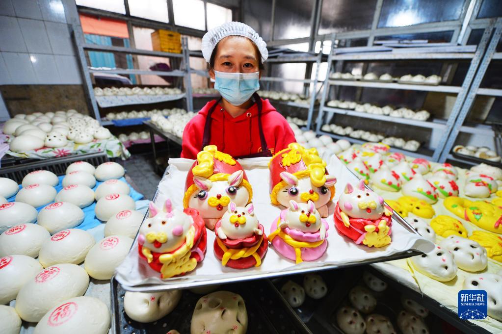 1月17日,山東省青島市城陽區紅島街道觀濤社區的居民在制作傳統花饃,花樣別致的花饃寓意美好生活“蒸蒸日上”。新華社發(王海濱攝)