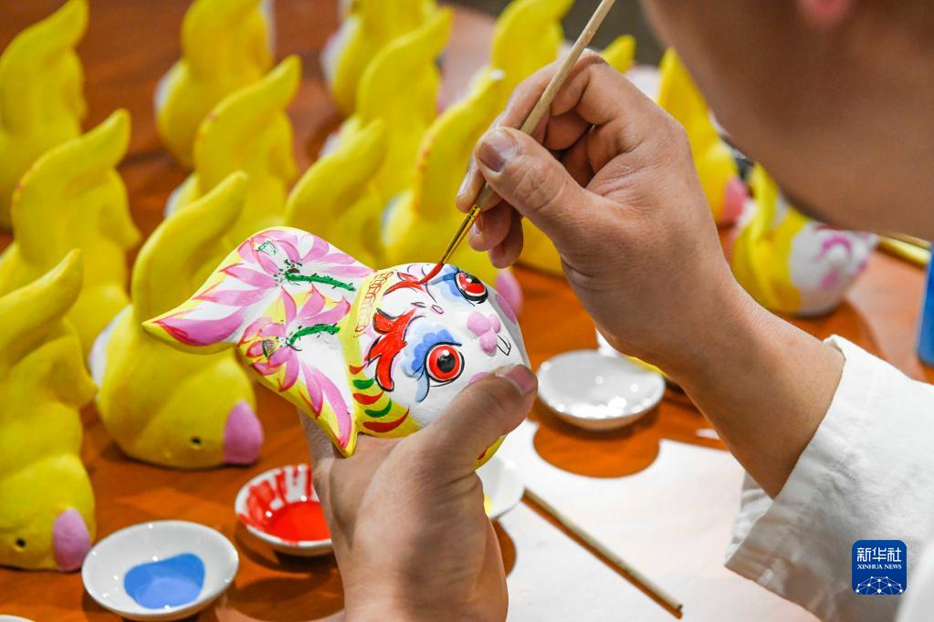 “今年是兔年,這些小泥兔非常受歡迎。”泥塑非遺傳承人李俊平的展位前站了不少游客,“通過對傳統泥塑的形象和造型比例進行調整,再結合現代流行元素,這些泥塑兔變得更加可愛。”