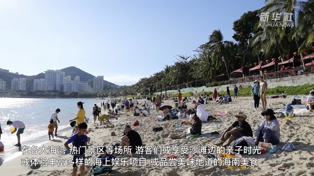三亞各大海灣、熱門景區以及免稅店等場所人群熙熙攘攘,游客們或享受沙灘邊的親子時光,或體驗豐富多樣的海上娛樂項目,或品嘗美味地道的海南美食,或開啟“買買買”的免稅購物模式,在這里度過一個別樣的新春佳節。