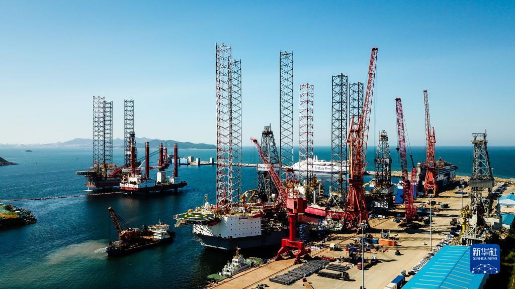 招商局金陵船舶(威海)有限公司造船泊位上忙碌生產(chǎn)的景象(2022年9月7日攝,無人機照片)。山東省威海經(jīng)濟技術(shù)開發(fā)區(qū)目前已匯聚一批裝備項目,形成百億元海工裝備產(chǎn)業(yè)集群。新華社記者 郭緒雷 攝