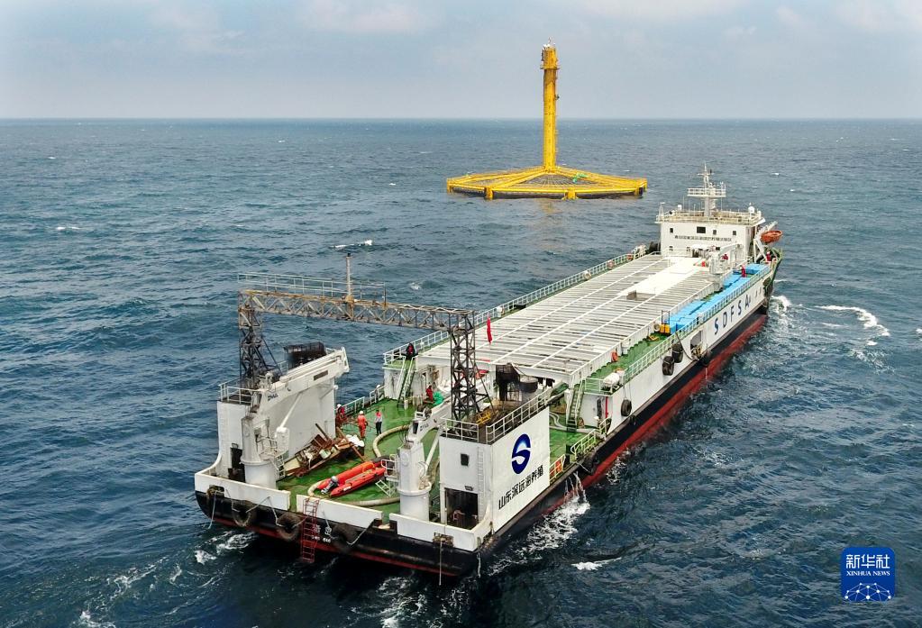 由江蘇啟東中遠海運海工為國外客戶訂制的N966自升式風電安裝船交付啟航(2022年12月20日攝,無人機照片)。新華社發(fā)(許叢軍 攝)