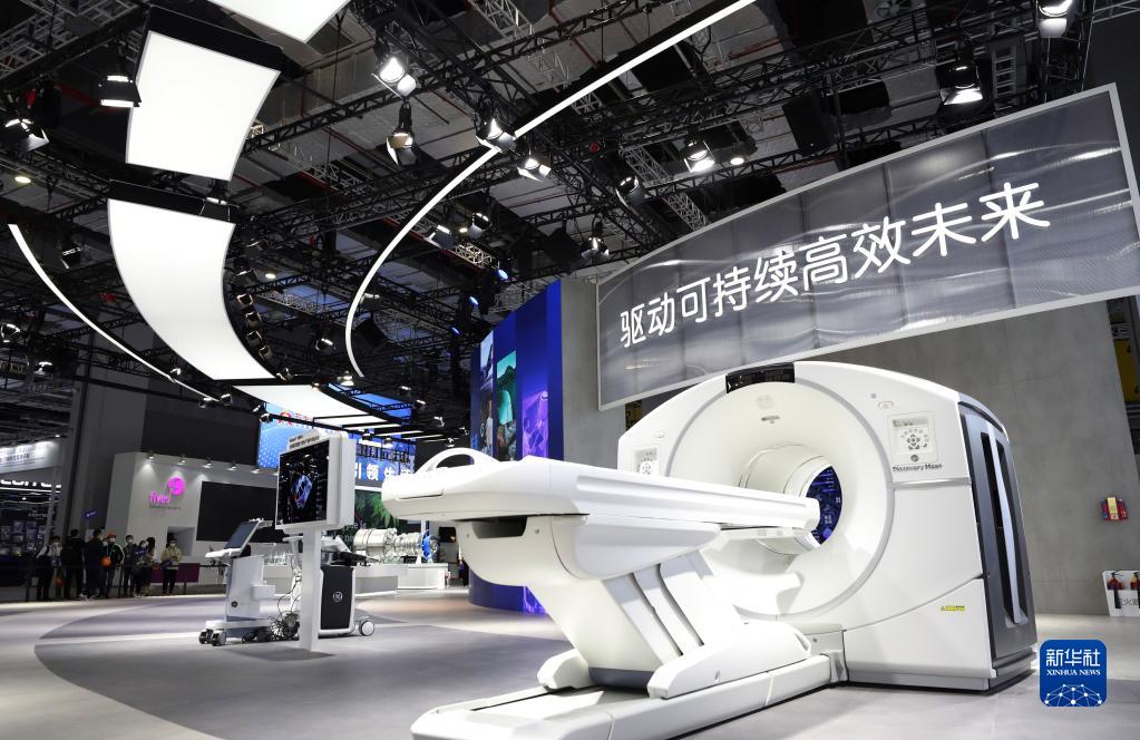 2022年11月2日拍攝的美國GE公司在進博會展臺展出的一臺大型醫(yī)療設備。新華社記者 方喆 攝