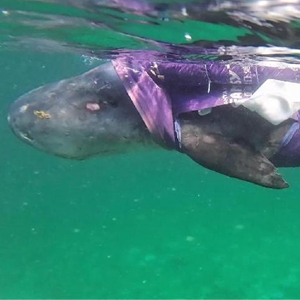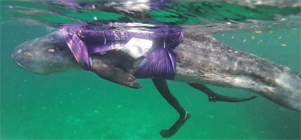 圖為被轉(zhuǎn)運(yùn)至三亞海昌生物保育中心的“藍(lán)寶”。(受訪者供圖)