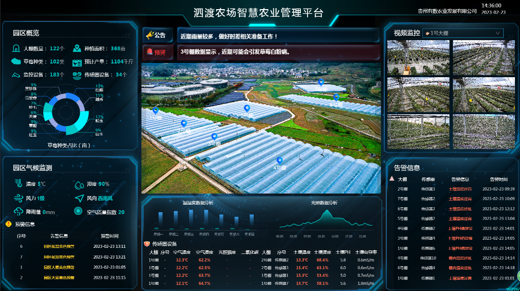 走進貴州省遵義市匯川區泗渡農場的辦公室,只見智慧農業管理平臺正在滾動播報以上警示。“這些預警信息是大數據系統分析大棚里的濕度和溫度得出的結論。”泗渡農場負責人徐緯說,每當系統發出預警,他們會馬上采取防治措施。