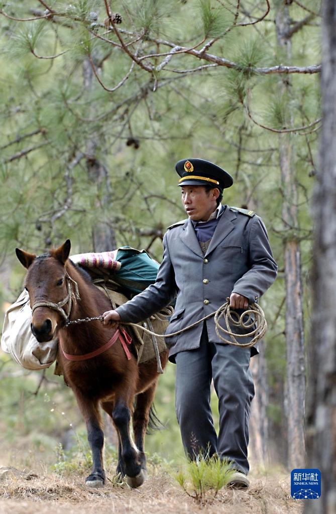 2005年1月12日,四川涼山彝族自治州木里藏族自治縣的馬班郵遞員王順友走在郵路上。新華社記者 陳凱 攝