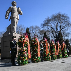 2018年3月5日,遼寧省撫順市在雷鋒紀念館廣場舉行活動,緬懷雷鋒同志并號召人們學習雷鋒精神。新華社記者 潘昱龍 攝