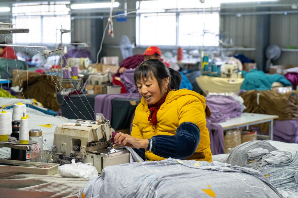 工人在安徽功茗坊農業科技有限公司紡織車間內工作。 新華社記者趙金正 攝