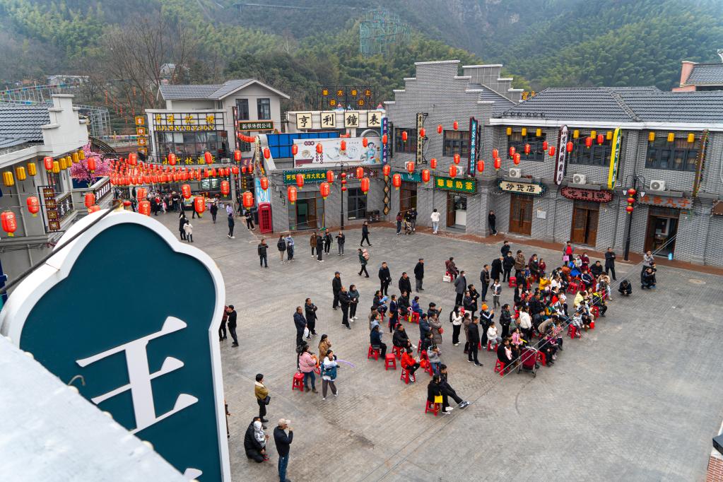 游客在六萬情峽景區觀看表演。新華社記者趙金正 攝