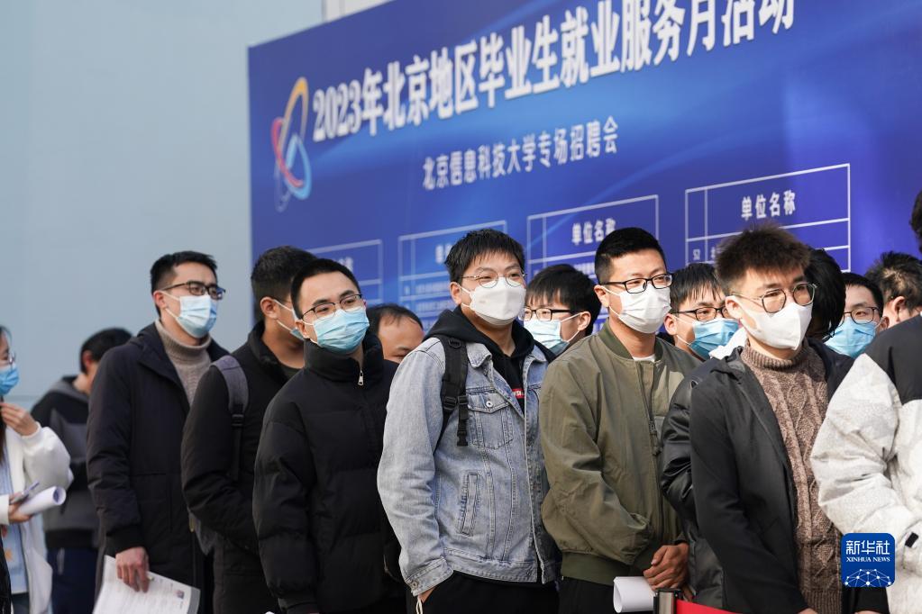 在北京信息科技大學,求職學生排隊等候進入招聘會現(xiàn)場(2023年3月1日攝)。新華社記者 鞠煥宗 攝