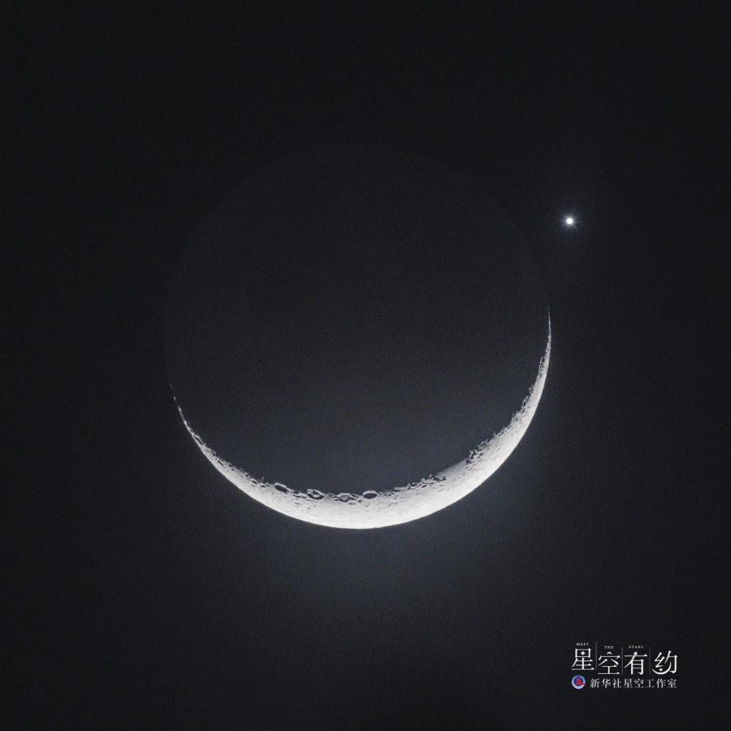 由于金星總在太陽附近出現,這也意味著月亮來到這里與之相合或相伴時總是蛾眉月或殘月的月相,亮度不高,和金星很匹配,還有“新月抱舊月”(在彎月牙的懷抱中,整個月面隱約可見)的現象。