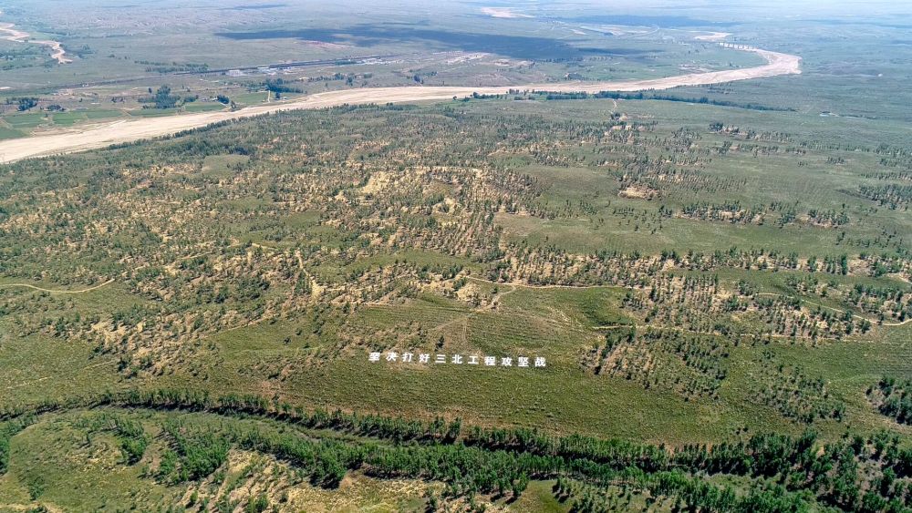 經(jīng)過(guò)多年的努力,庫(kù)布其沙漠北緣、黃河的南岸,形成了“綠帶鎖黃沙”的壯麗景觀,有效阻止庫(kù)布其沙漠?dāng)U張,也減少了對(duì)黃河的輸沙量。