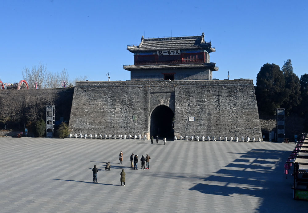 游客在河北省秦皇島市山海關區(qū)天下第一關景區(qū)游覽(2023年11月29日攝)。新華社記者 楊世堯 攝