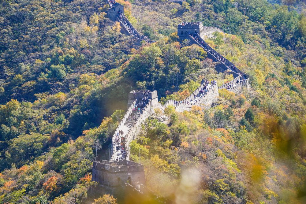游客在北京慕田峪長城上游覽(2023年10月21日攝)。新華社記者 陳曄華 攝