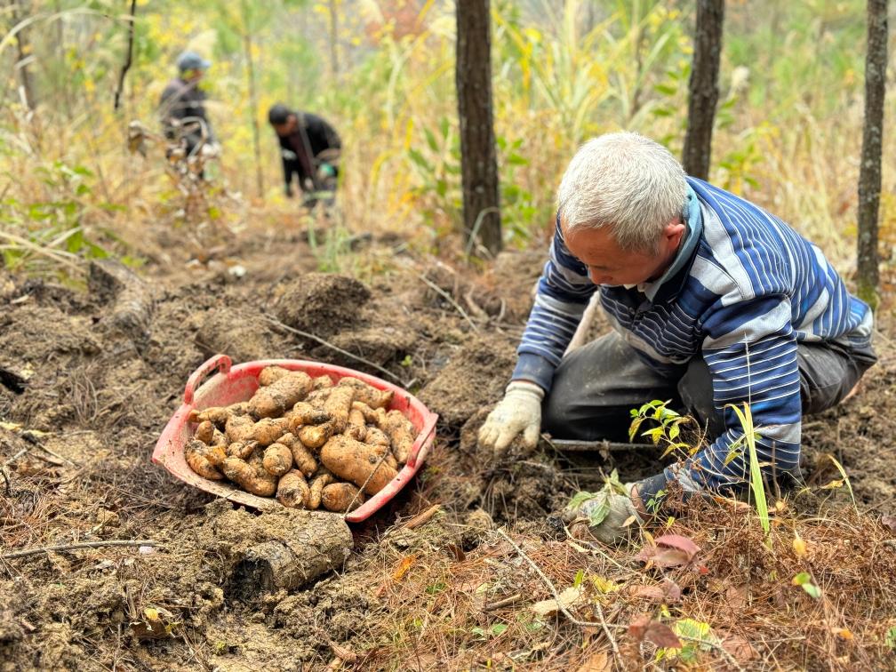 重慶市城口縣周溪鄉(xiāng)村民正在采挖天麻。新華社記者趙佳樂(lè) 攝