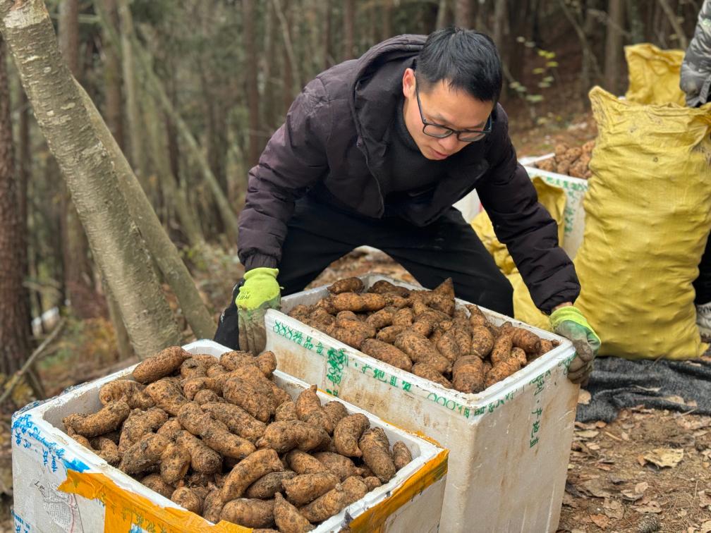 工作人員正在搬運(yùn)一箱新鮮天麻。新華社記者趙佳樂(lè) 攝