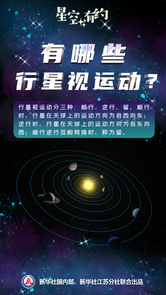 “地球和其他太陽系行星沿著各自軌道,以不同速度繞太陽公轉。但在地球上看,這些行星在天球上的運動時而前進、時而后退。”中國科學院紫金山天文臺科普主管王科超解釋說,以海王星為例,在地球上以恒星為背景觀察,會發現大部分時間里,海王星緩慢地自西向東運動,這被稱為順行。但隨著地球和海王星在各自軌道上位置的變化,每隔一段時間,海王星相對恒星背景的運動方向會變為自東向西,像是在“后退”,這被稱為逆行。逆行與順行互相轉換時,海王星相對恒星背景存在一個短暫不動的時刻,稱為留。