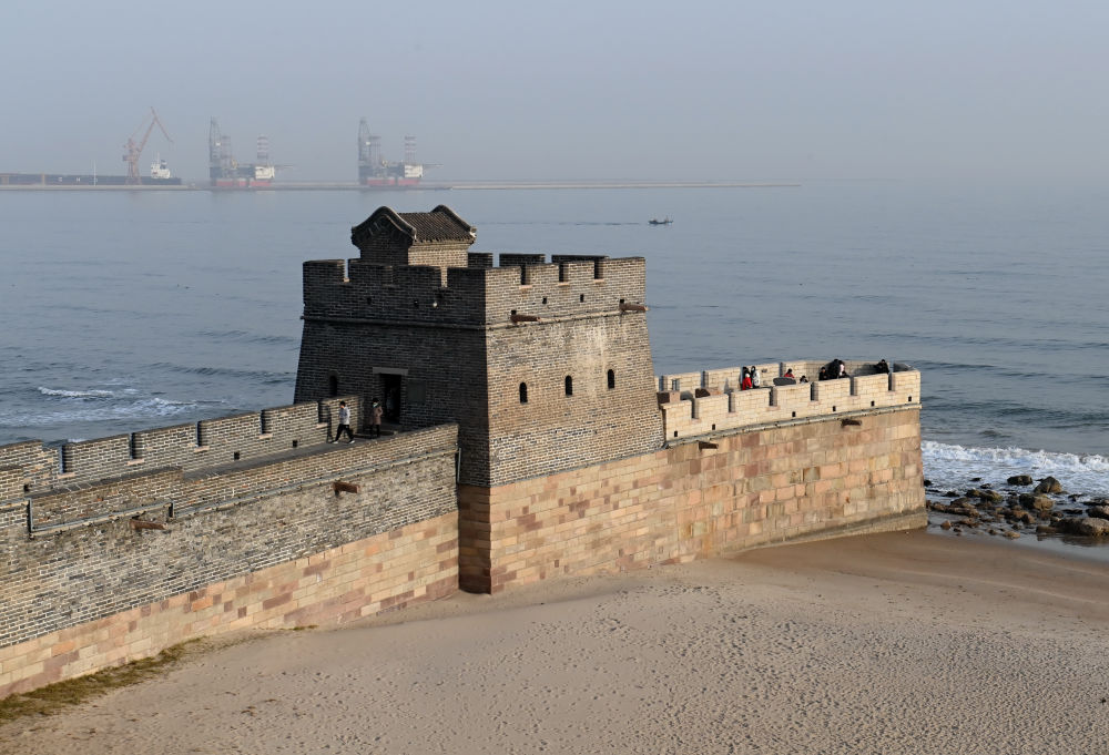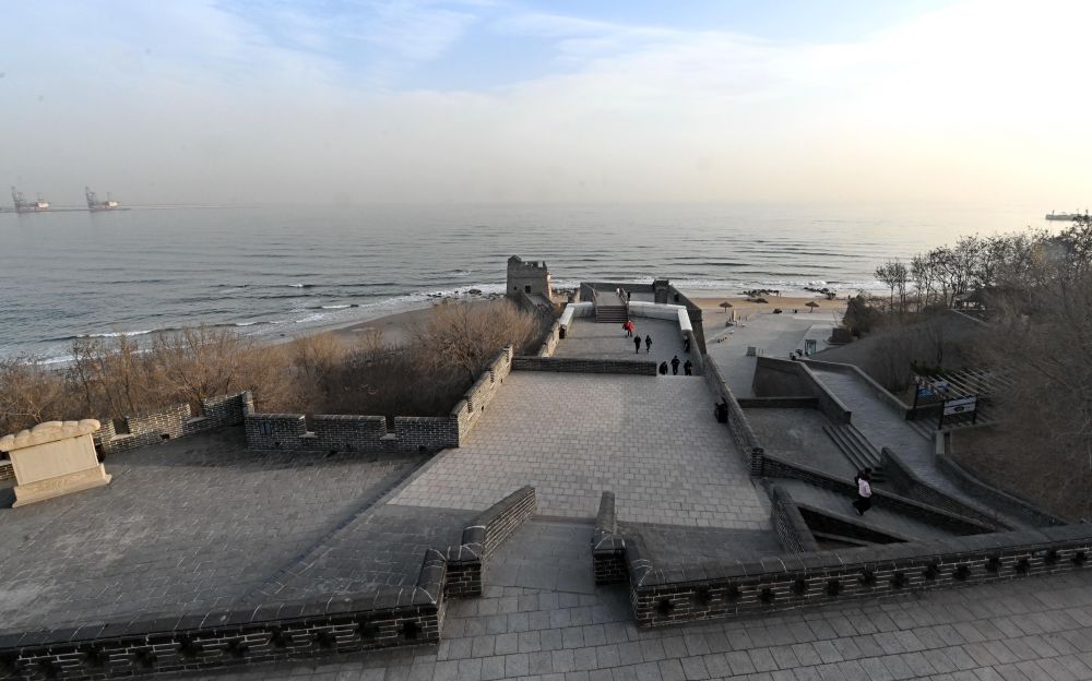2023年12月7日,游客在山海關老龍頭景區觀光游覽。新華社發(李鐸 攝)