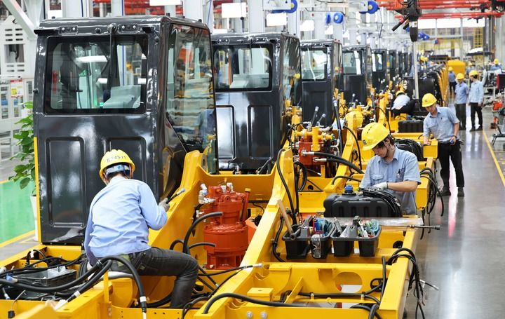 这是在广西柳州市柳工挖掘机智慧工厂拍摄的挖掘机上部机构件组装线(2024年11月12日摄)。新华社记者 金皓原 摄
