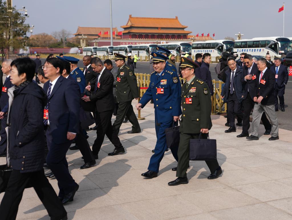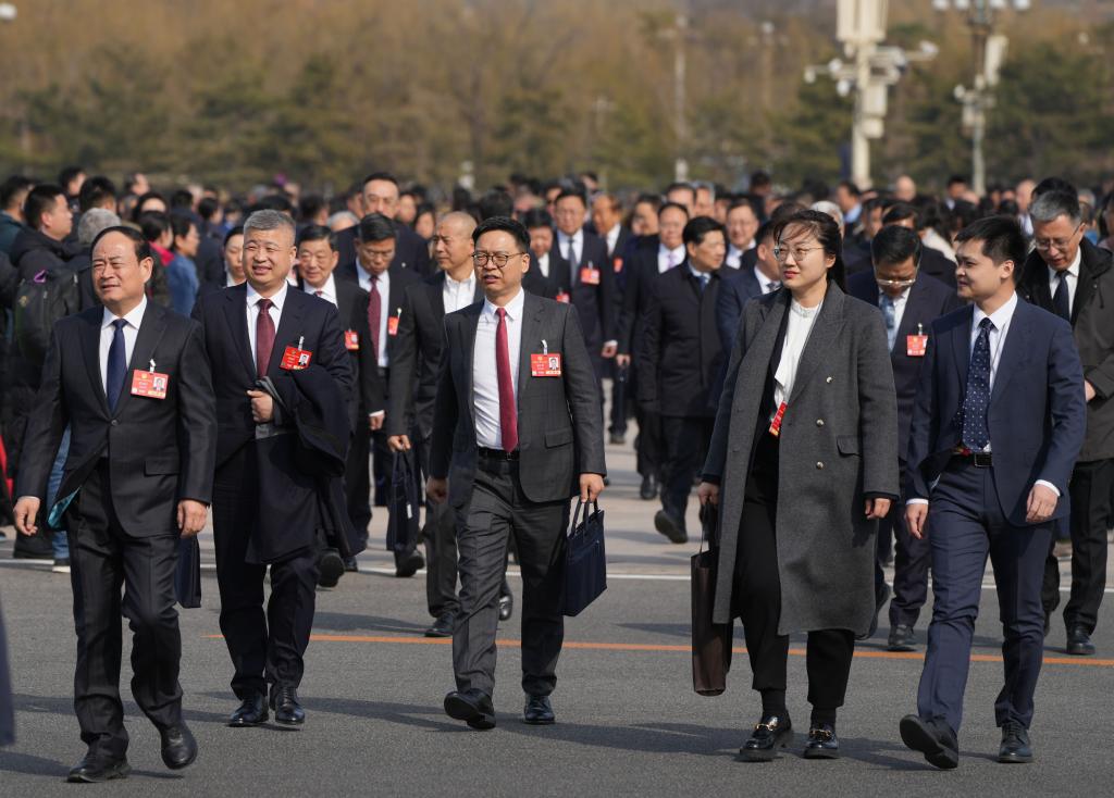 3月4日,全国政协十四届三次会议开幕会即将在北京人民大会堂举行。这是全国政协委员走向会场。