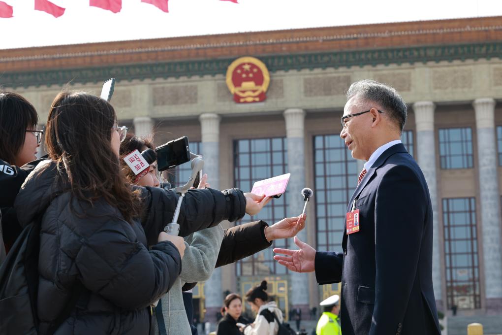 3月4日,全国政协十四届三次会议开幕会即将在北京人民大会堂举行。这是全国政协委员接受采访。