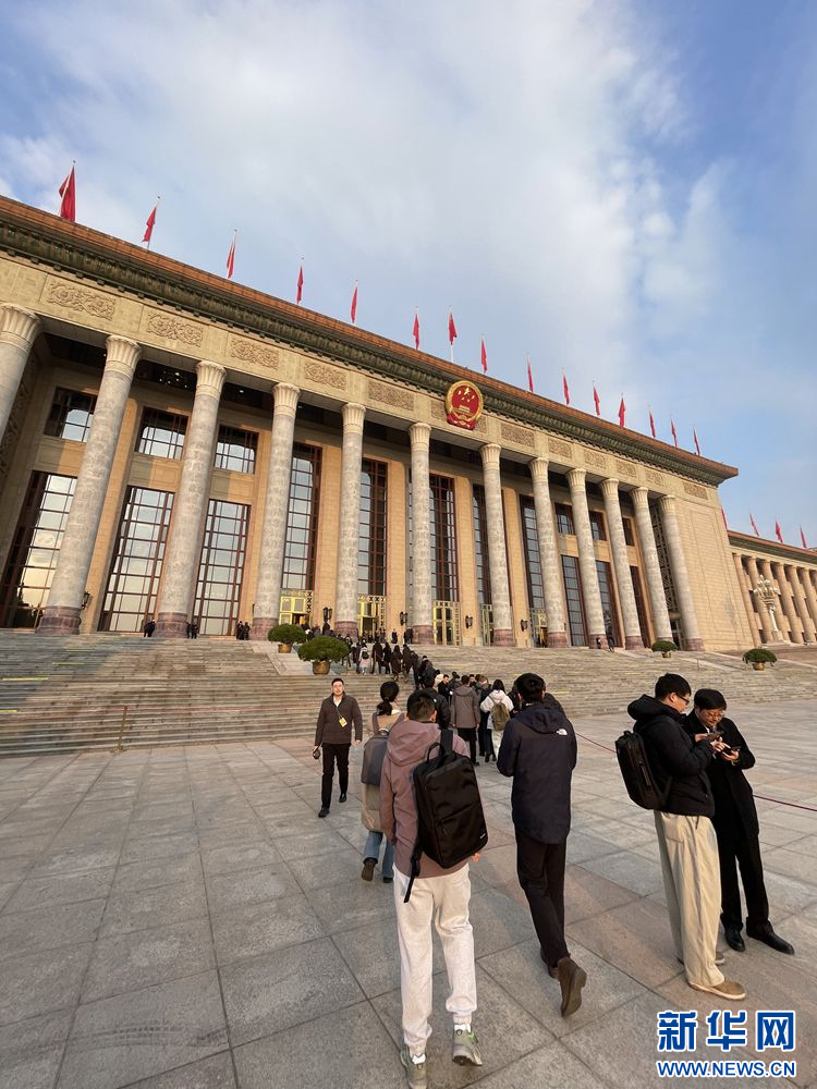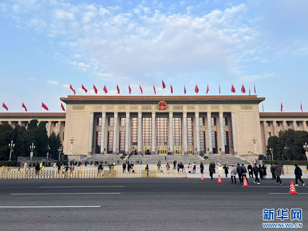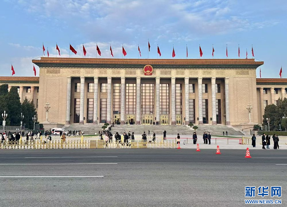 3月5日,第十四届全国人民代表大会第三次会议在北京人民大会堂开幕。图为人民大会堂外景。新华网记者 赵煜彤 摄