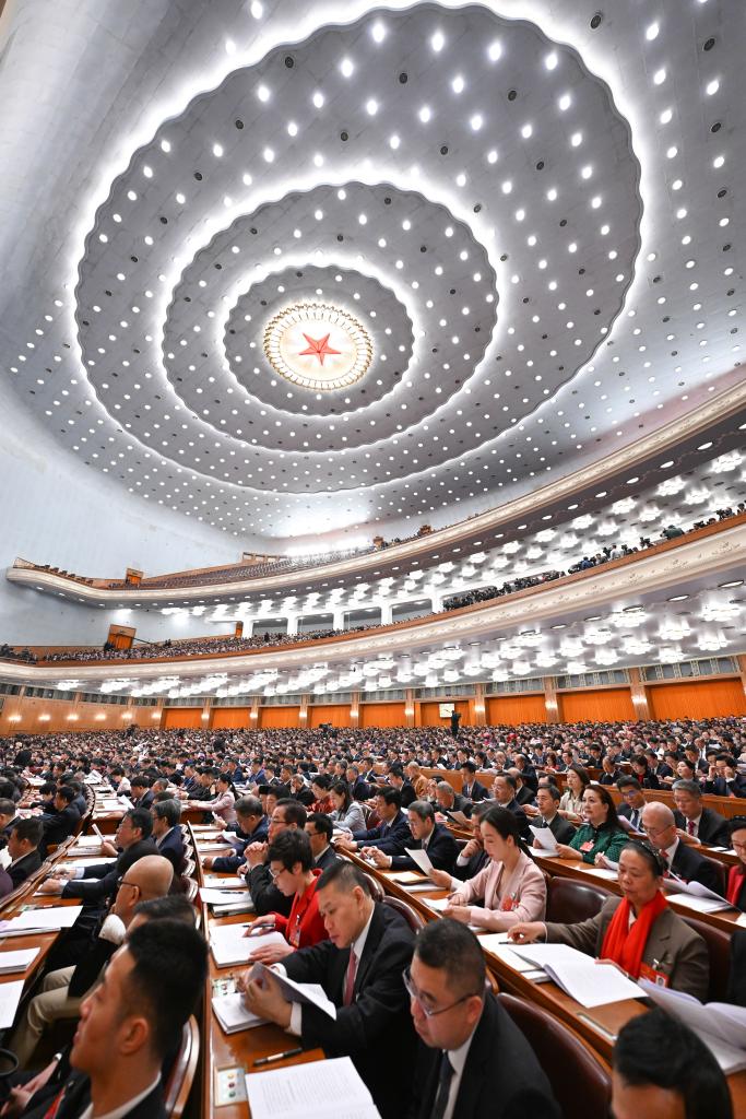 3月5日,十四届全国人大三次会议开幕会在北京人民大会堂举行。这是全国政协委员列席大会。