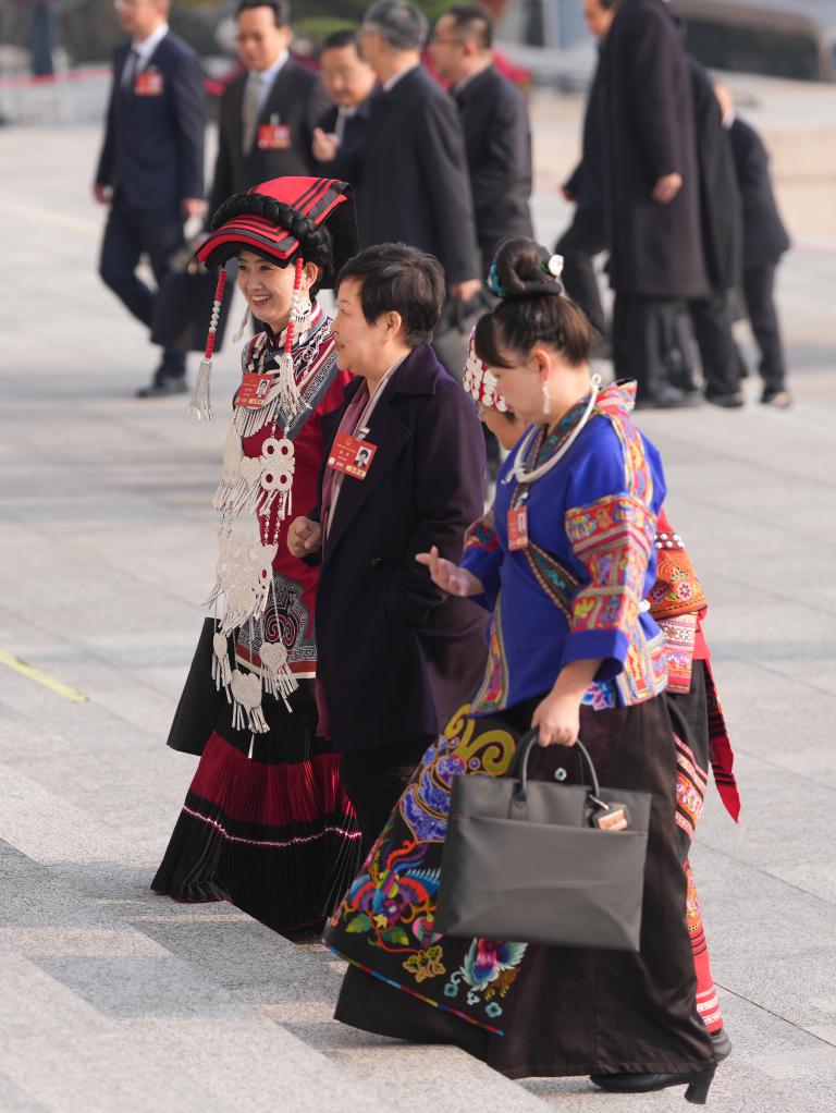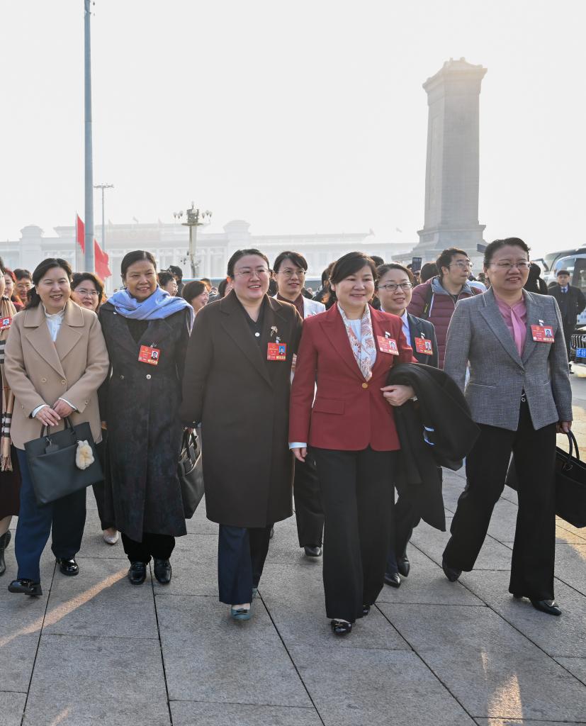 3月8日,十四届全国人大三次会议在北京人民大会堂举行第二次全体会议。这是全国人大代表走向会场。