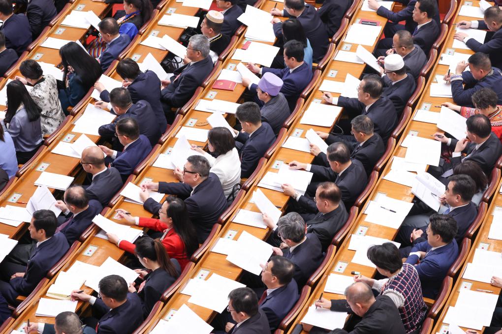 3月8日,十四届全国人大三次会议在北京人民大会堂举行第二次全体会议。
