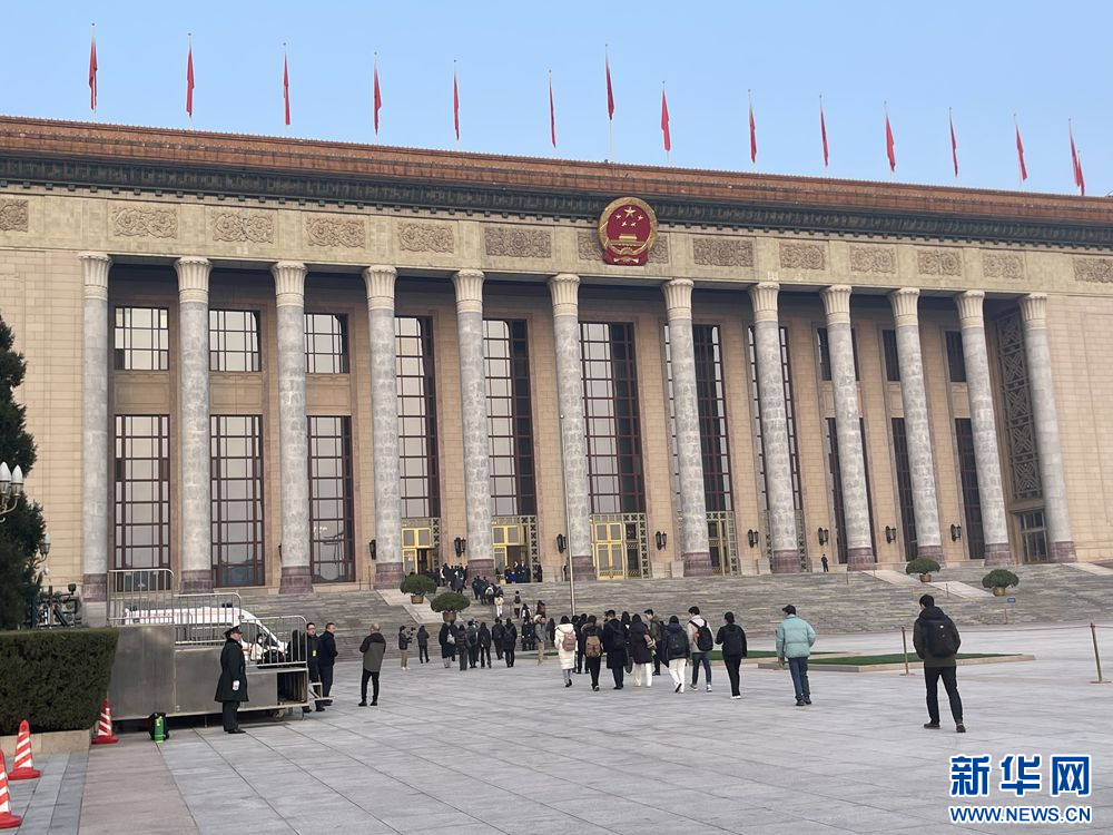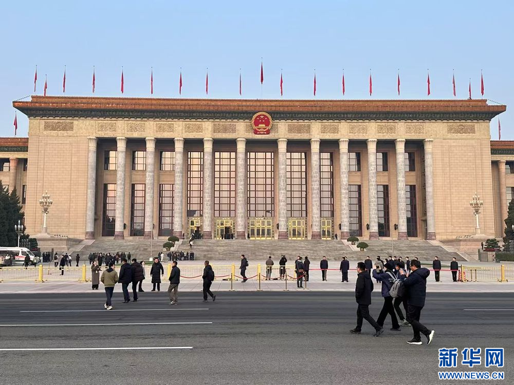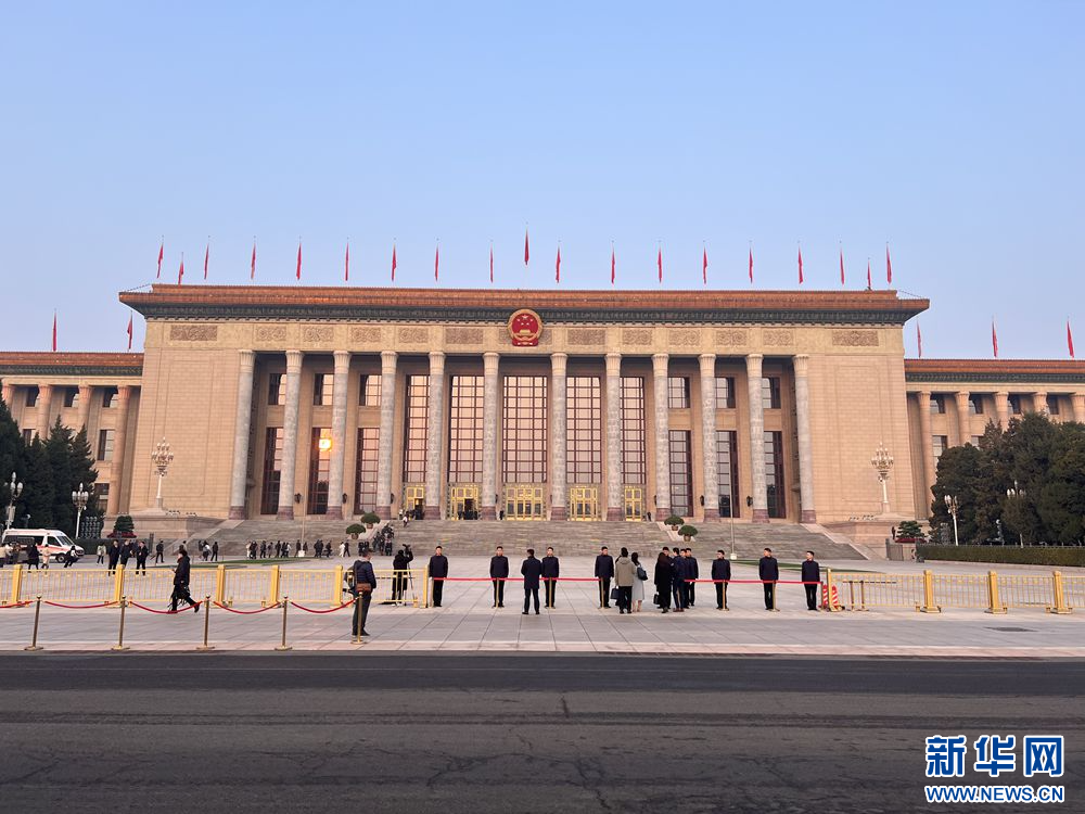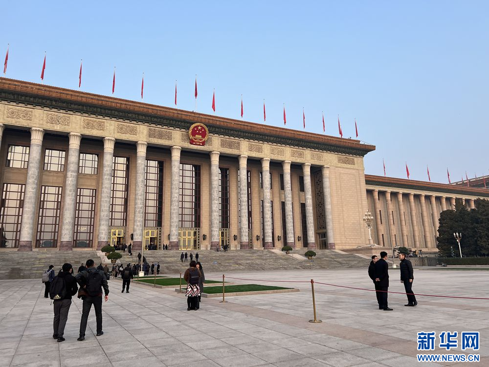 3月8日,十四届全国人大三次会议在北京人民大会堂举行第二次全体会议。图为人民大会堂外景。新华网记者 赵煜彤 摄pagebreak