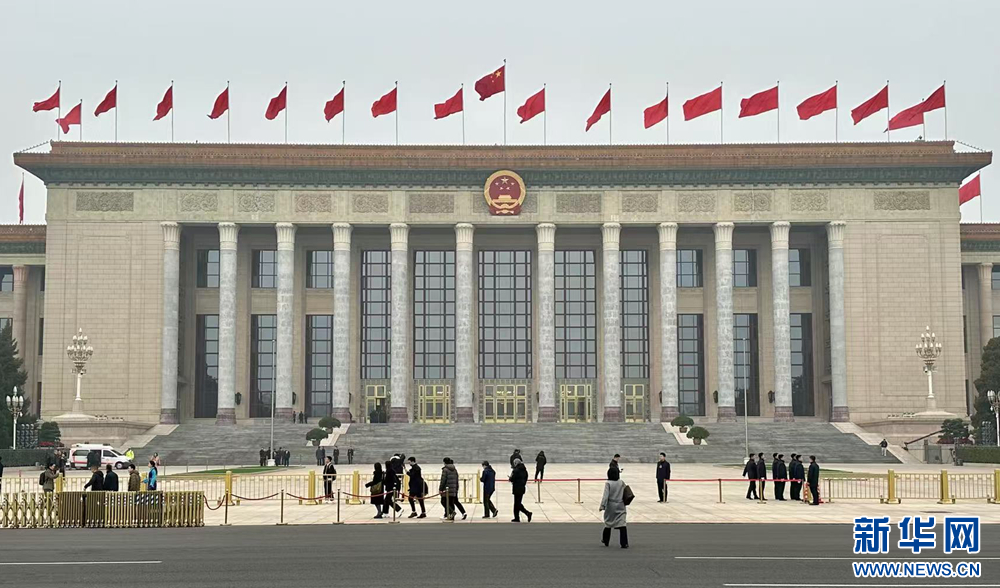 3月11日,第十四届全国人民代表大会第三次会议在北京人民大会堂举行闭幕会。图为人民大会堂外景。新华网记者 王翰林 摄