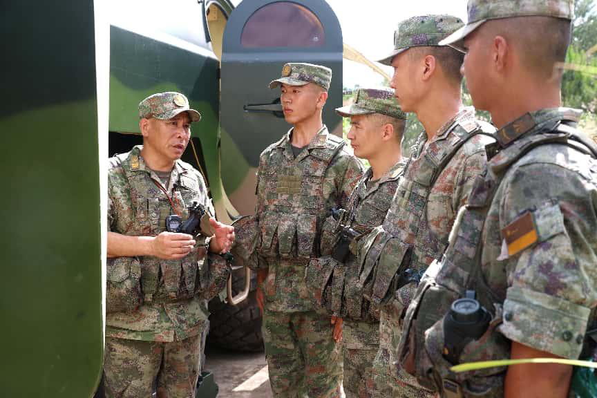 ↑何贤达(中)为新号手讲解装备操作技巧。程李航 摄