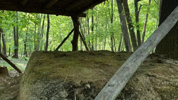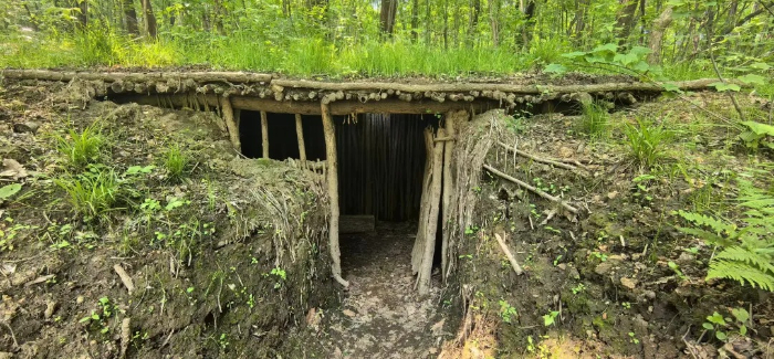 红石砬子山抗日根据地“地窨子”原址复原物。新华网 张桢 摄