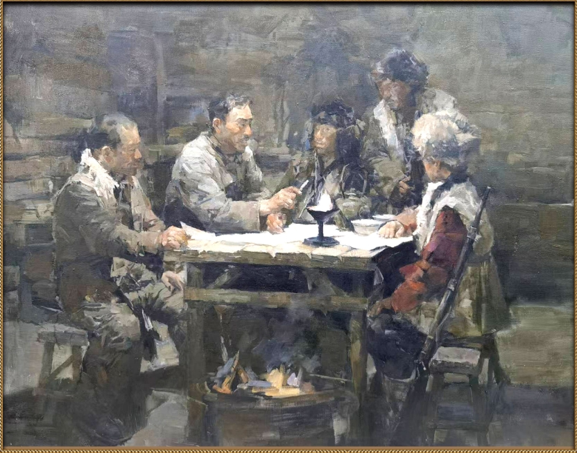 油画:杨靖宇提出“灯芯”理论。来源:磐石市抗日斗争纪念馆