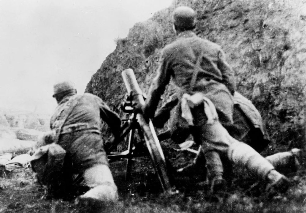 1940年,彭德怀在“百团大战”时,于山西省武乡县关家垴前线炮团哨所(距敌只有五百米)观察敌情,指挥战役。新华社发