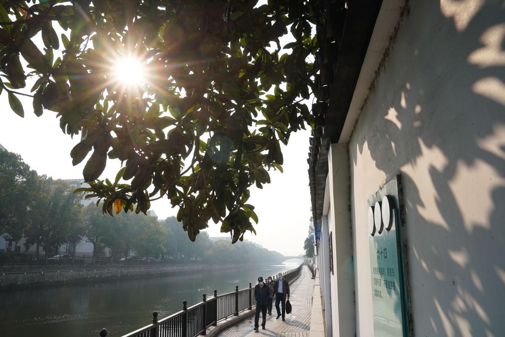 2023年1月6日,市民在苏州市姑苏区二郎巷健身步道散步。新华社记者 季春鹏 摄