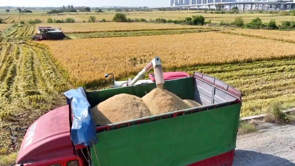 南昌青山湖区中晚稻迎来集中收割。