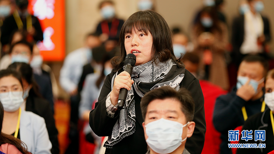 10月18日(星期二)15:00,二十大新聞中心在梅地亞新聞中心二層新聞發(fā)布廳舉辦第一場(chǎng)集體采訪。圖為香港經(jīng)濟(jì)導(dǎo)報(bào)記者在分會(huì)場(chǎng)提問。(新華網(wǎng) 陳杰 攝)