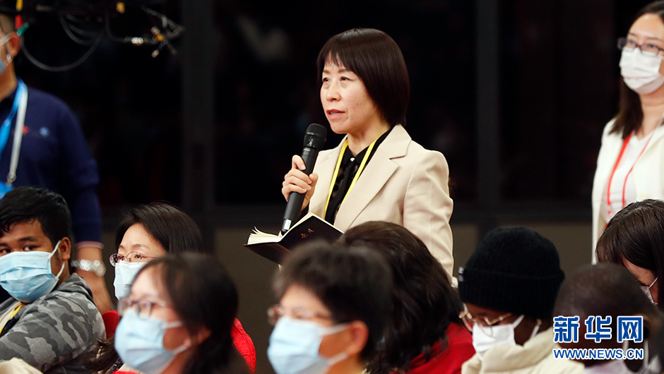 10月18日(星期二)19:30,二十大新聞中心在梅地亞新聞中心二層新聞發布廳舉辦第二場集體采訪。圖為黨建雜志社記者在分會場提問。(新華網 陳杰 攝)